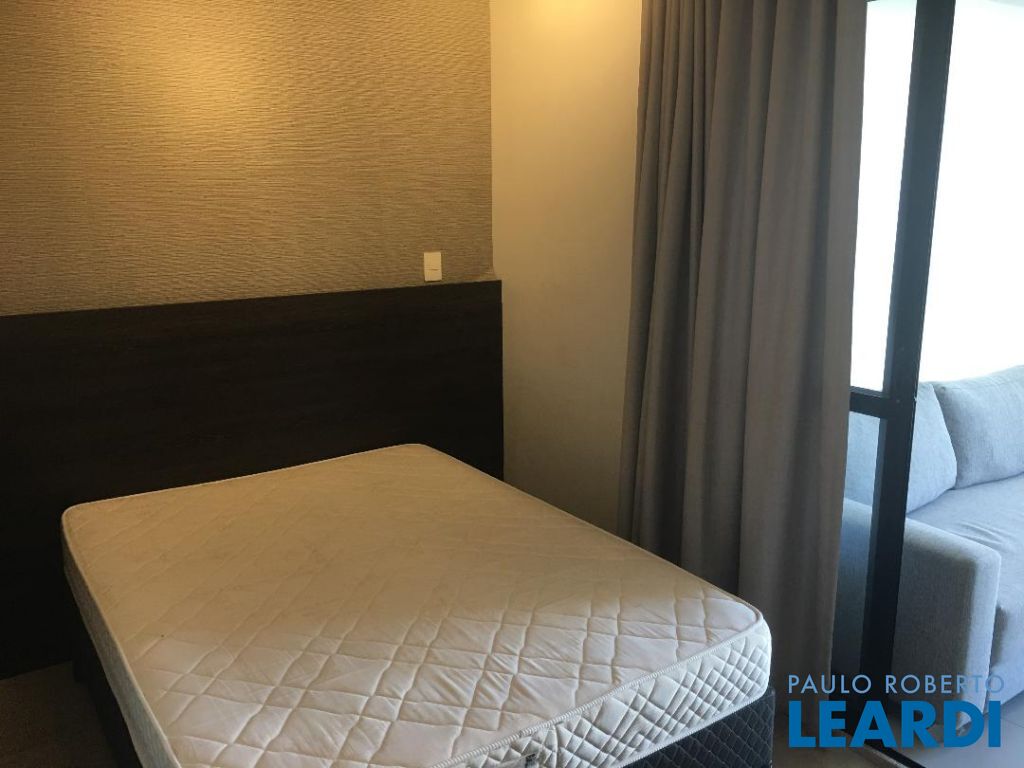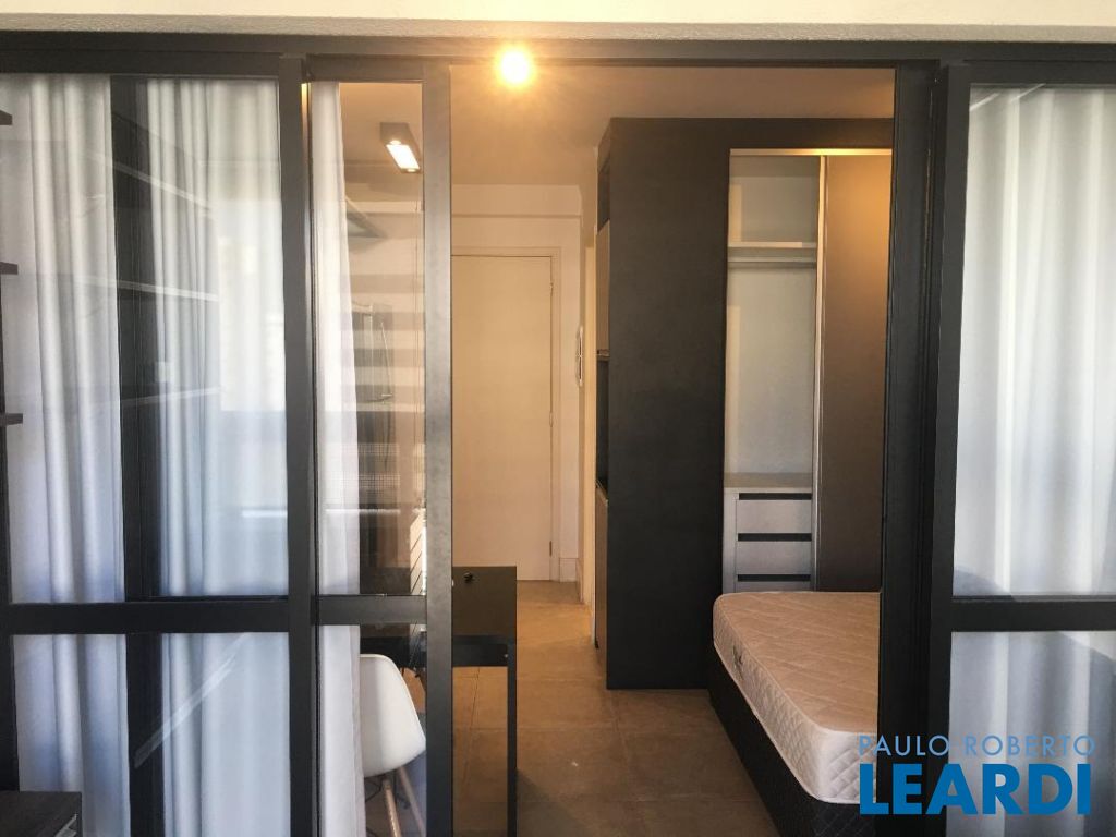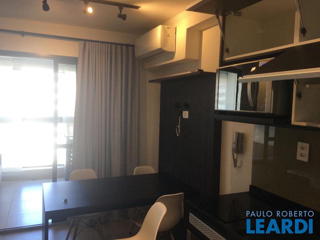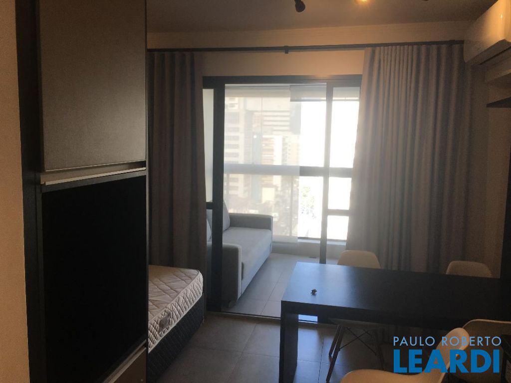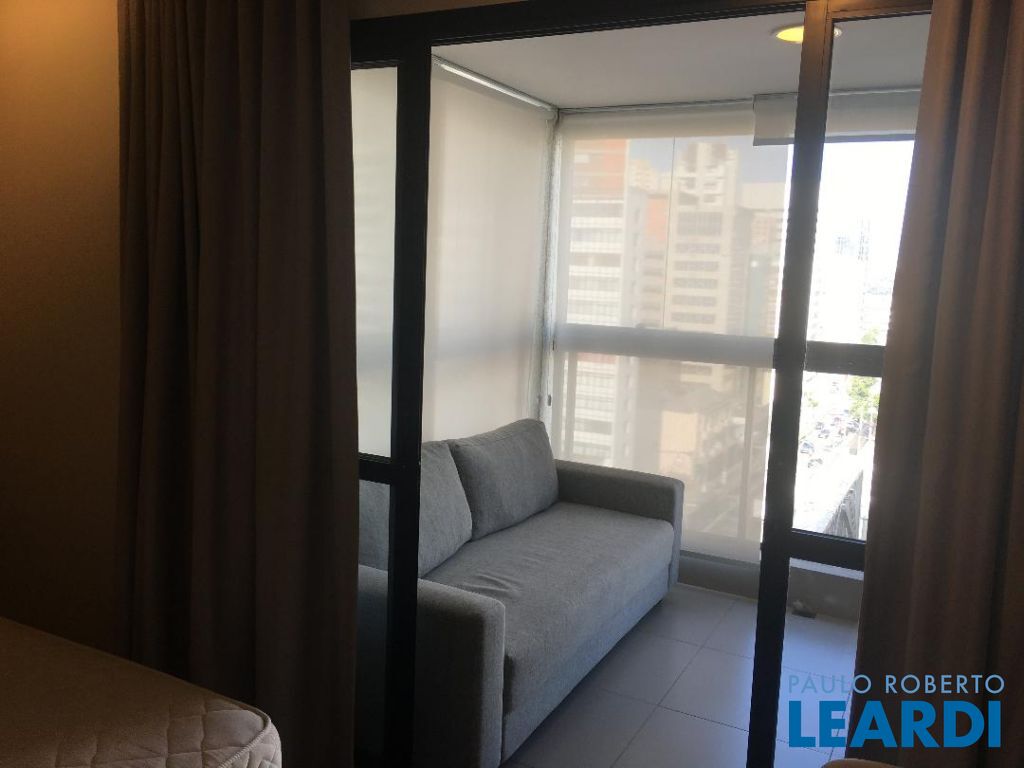 Apartamento finamente mobiliado com geladeira e micro-ondas de aço inox, cook-top e forno embutidos, cama-box e colchão, iluminação indireta, ar condicionado, varanda fechada com vidro temperado, sofá de 3 lugares e estante/rak; andar alto com vista para o Jardim Paulista; Hall de entrada, cozinha, sala, e dormitório, integrados; cozinha com piso de cerâmica vitrificada, geladeira, gabinete com pia de inox, cooktop, forno, e gaveteiro, armário, micro ondas; sala com mesa e 4 cadeiras, painel de madeira com prateleiras, e armário totem; interfone; dormitório com cama-box de casal e colchão, armário embutido com portas de correr; porta de vidro para varanda fechada com persianas de enrolar e vista para o Jardim Paulista, piso em porcelanato, sofá de 3 lugares e estante/rac com prateleiras,; banheiro com portas de vidro temperado , ducha, exaustor, pia sobreposta em gabinete; iluminação indireta em todo o apartamento; 2 aparelhos de ar condicionado; cortinas;