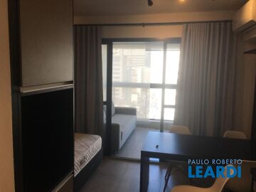 Apartamento finamente mobiliado com geladeira e micro-ondas de aço inox, cook-top e forno embutidos, cama-box e colchão, iluminação indireta, ar condicionado, varanda fechada com vidro temperado, sofá de 3 lugares e estante/rak; andar alto com vista para o Jardim Paulista; Hall de entrada, cozinha, sala, e dormitório, integrados; cozinha com piso de cerâmica vitrificada, geladeira, gabinete com pia de inox, cooktop, forno, e gaveteiro, armário, micro ondas; sala com mesa e 4 cadeiras, painel de madeira com prateleiras, e armário totem; interfone; dormitório com cama-box de casal e colchão, armário embutido com portas de correr; porta de vidro para varanda fechada com persianas de enrolar e vista para o Jardim Paulista, piso em porcelanato, sofá de 3 lugares e estante/rac com prateleiras,; banheiro com portas de vidro temperado , ducha, exaustor, pia sobreposta em gabinete; iluminação indireta em todo o apartamento; 2 aparelhos de ar condicionado; cortinas;
